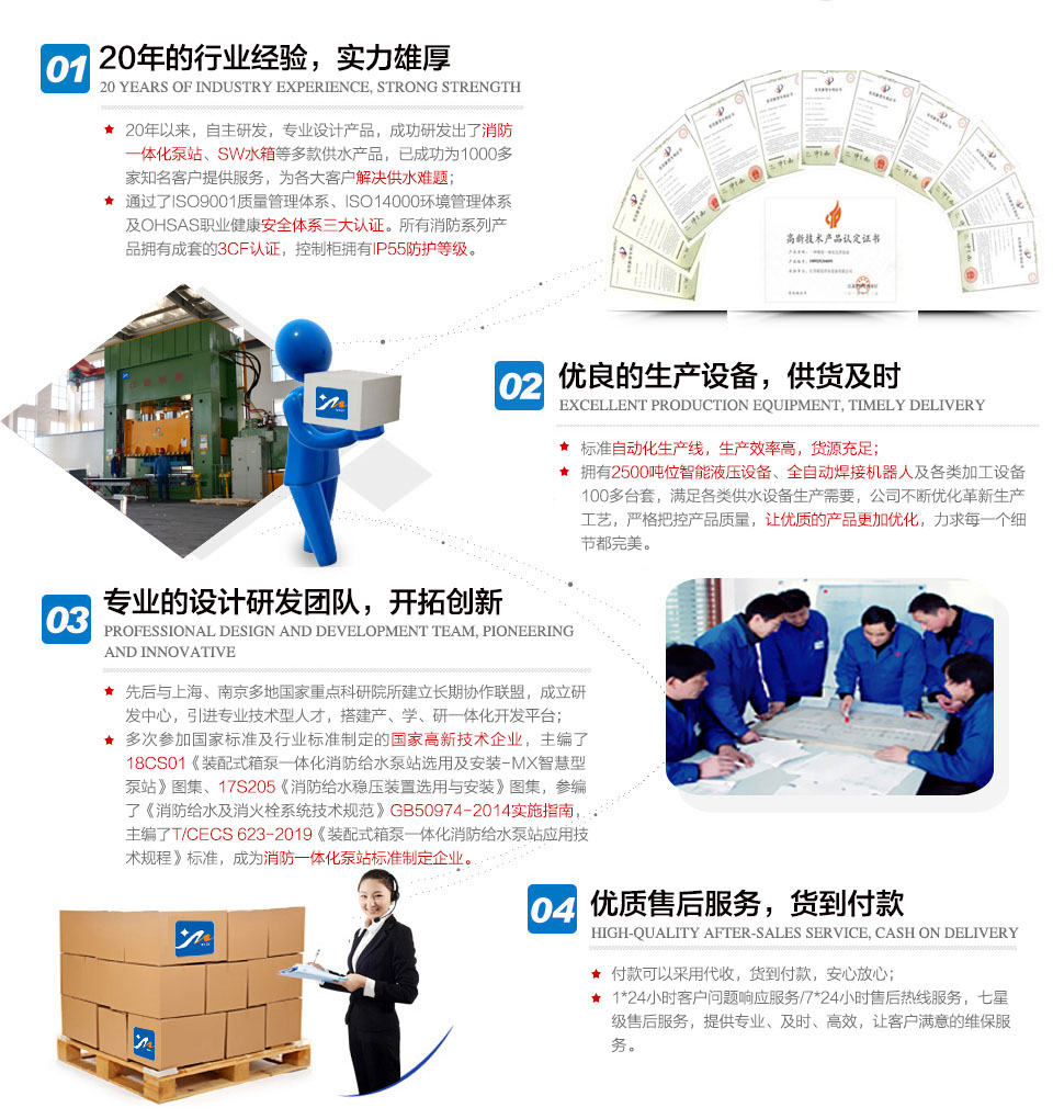 我公司以產(chǎn)品為導(dǎo)向與國(guó)家重點(diǎn)科研院所建立長(zhǎng)期協(xié)作聯(lián)盟,成立了研發(fā)中心并先后開(kāi)發(fā)了幾十個(gè)專(zhuān)利項(xiàng)目,抗浮箱泵一體化成套設(shè)備等多個(gè)產(chǎn)品被列為江蘇省高新技術(shù)產(chǎn)品。主編的...